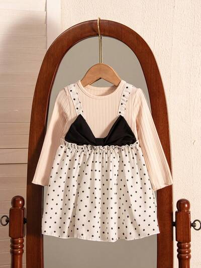 Baby Girls' Color Block Polka Dot Printed Patchwork Dress