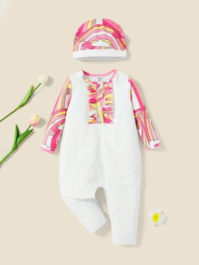 Baby Girls' Sleeveless Jumpsuit With Oil Painting Print