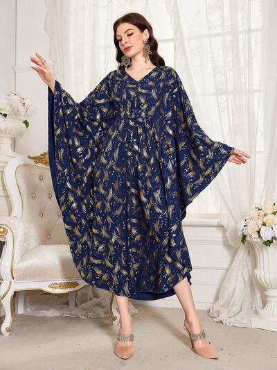 Plus Size Floral Print V-Neck Arabian Clothing-55%