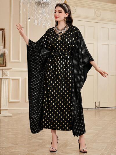 Women's Gold Dots Batwing Sleeve Kaftan Dress-60%