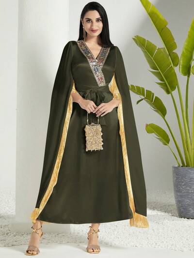 Ladies' Solid Color V-Neck Cape Sleeve Arabic Style Dress