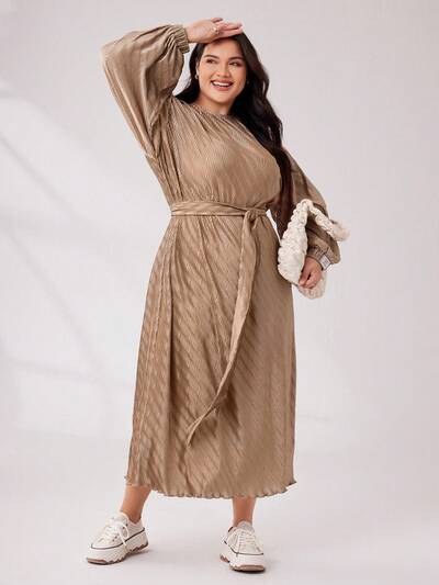 Plus Size Women'S Long Puff Sleeve Round Neck Bubble Dress-60%