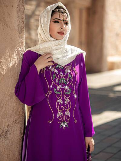 Women's Heavy Beaded Elegant Long Maxi Length Robe Abaya, Muslim Fashion Abaya For Casual/Festival/Gathering/Travel-60%