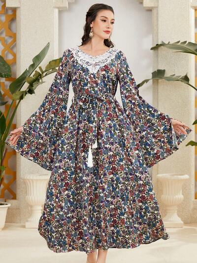 Women's Floral Print Bell Sleeve Arabic Style Dress-60%
