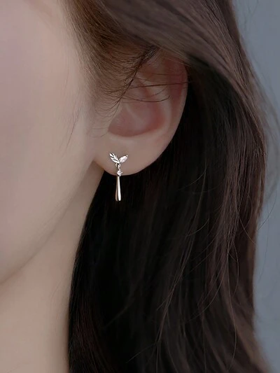 ELSEDES 1pair Fashionable And Unique S925 Silver Leaf Shaped Earrings With Sparkling Multi-faceted Gemstones Inlaid, Perfect For Women's Summer Outfits, Daily Wear And Party Wear
