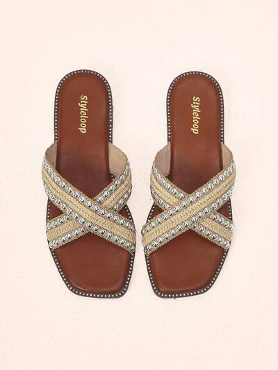 Women'S Stylish Metal Braided Rivet Cross Vacation Spring And Summer Flat Sandals Comfortable Flat Slippers-60%