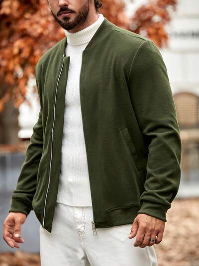 Wide-Fit Men's Solid-Colored Hooded Zip-Up Jacket-60%