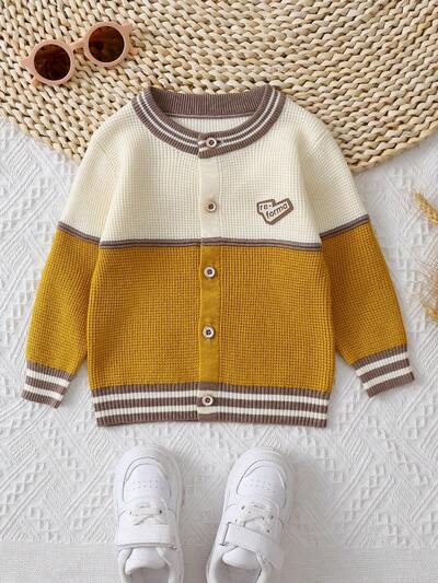 Baby Boy Letter Patched Striped Trim Cardigan-60%
