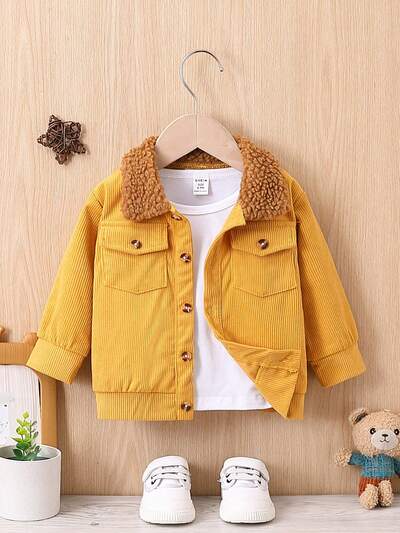 Baby Boy Borg Collar Flap Pocket Button Front Jacket Without Tee-60%