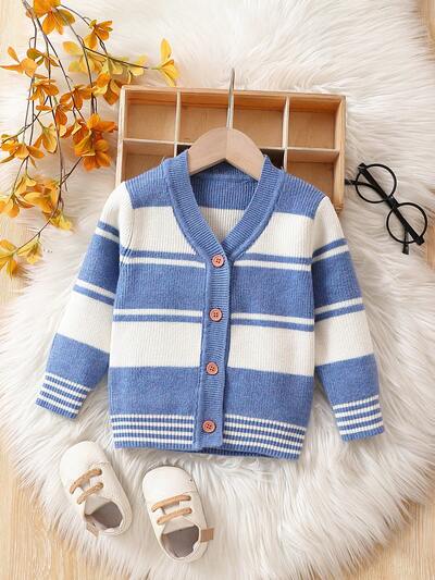 Infant Boys' Contrast Color Striped Cardigan With Front Button Placket-60%