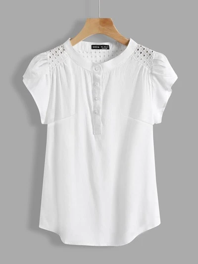 Schiffy Eyelet Panel Petal Sleeve Top White Work-32%