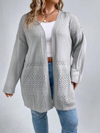 Plus Size Pointelle Knit Drop Shoulder Cardigan-60%