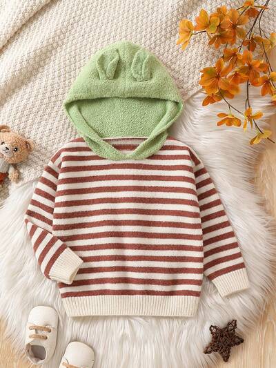 Little Girls' Striped Plush Hoodie Sweater-60%