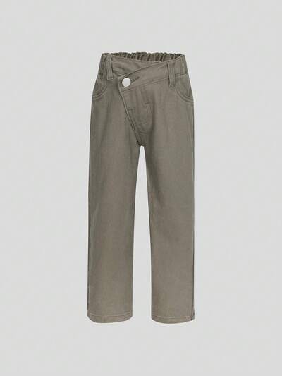 Little Girls' Stylish Asymmetric Waist Loose & Comfortable Straight Leg Jeans For Streetwear And Casual-60%