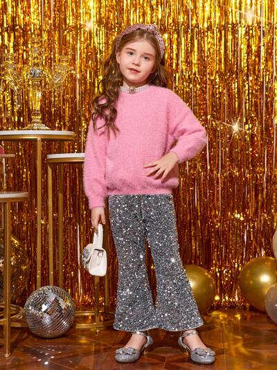 Young Girl 1pc Drop Shoulder Fuzzy Sweater
