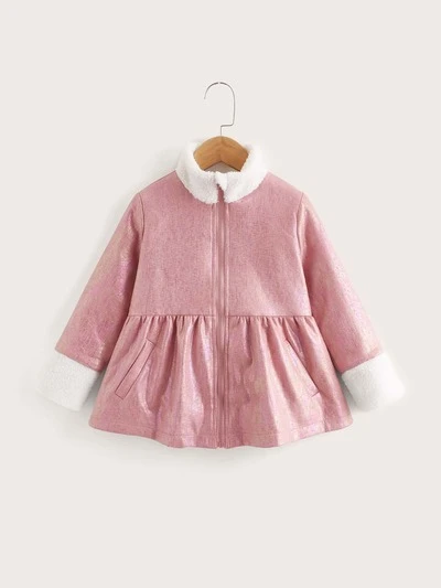 Toddler Girls Zip Up Teddy Panel Ruffle Hem Coat
