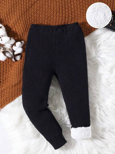 Young Boy Solid Thermal Lined Knit Pants