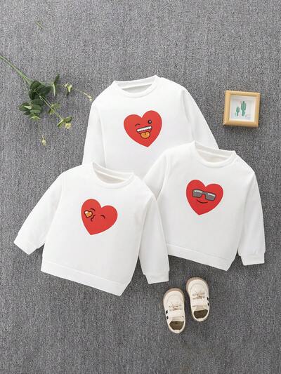 3pcs/set Toddler Boys' Casual Heart Printed Long Sleeve Regular Sweatshirt For Daily Wear In Autumn Or Winter