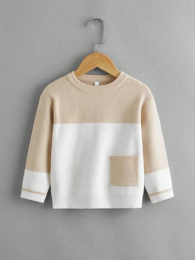 Boys' Color Block Patchwork Sweater With Pocket-60%