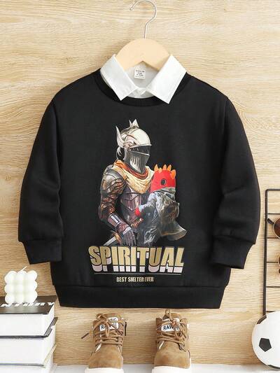 Young Boys Slogan & Figure Graphic Sweatshirt Without Shirt-60%