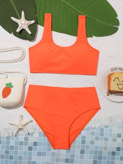 Teen Girl Summer Beach Solid Wireless Bikini Set, Bathing Suit