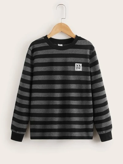 Tween Boy Casual Long Sleeve Striped Pattern Patch Detailed T-Shirt, Spring & Autumn-47%