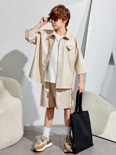 Tween Boy Casual Loose Fit Short Sleeve Polo Shirt And Shorts Set