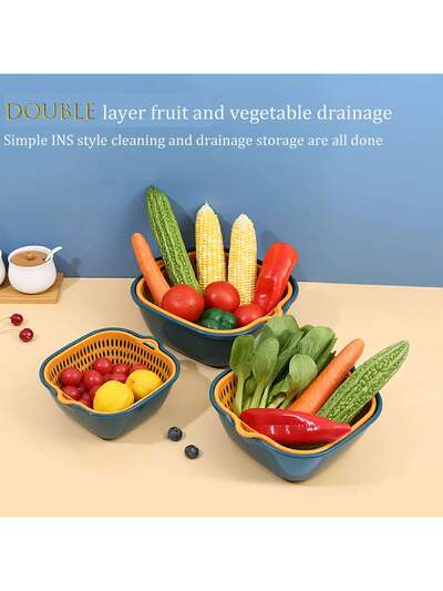 6pcs Simple PP Draining Basket, Portable Fruit Cleaning Basket For Household-20%