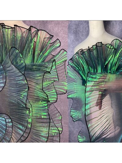 2 Yards Mermaid Holographic Gradient Fabric With Ruffle & Pleats & Lace Border Tulle Fabric For Decoration