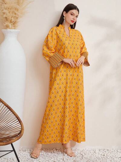 Women's Floral Printed Long Sleeve Arabian Dress-65%