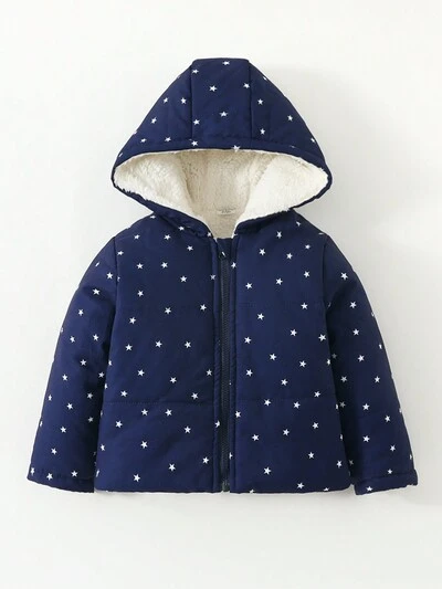 Baby Boy Blue Star Printed Thick Casual Daily Padded Coat, Autumn And Winter-60%