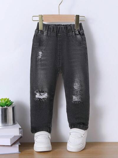 Baby Girl Elastic Waist Ripped Jeans-60%