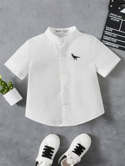 Baby Boy's Dinosaur Printed Button-Front Shirt, Casual And Simple Style For Summer