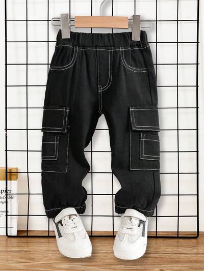 Baby Boys' Letter Print T-Shirt And Street-Style Fashionable Cargo Pants Set With Woven Belt-41%