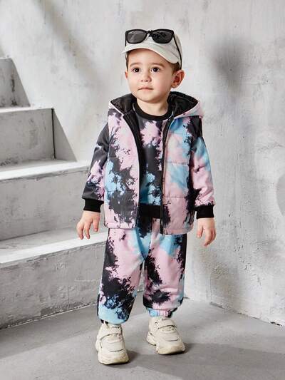 Baby Boy Tie Dye Zip Up Vest Padded Coat & Sweatpants & Pullover-60%