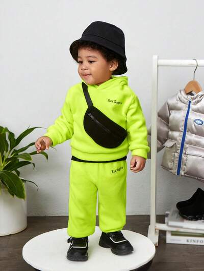 3pcs Set: Unisex Baby Letter Embroidered Hoodie Sweatshirt, Jogger Pants & Crossbody Bag, Thicken Winter-60%