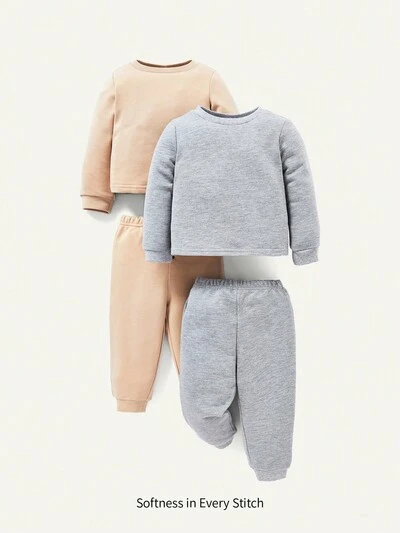 Baby Boy 2pcs Solid Pullover & 2pcs Sweatpants Matching Set-41%