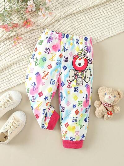 Baby Girls' Fall & Winter Tie-Dye Printed Bear Patterned Bottoms-58%