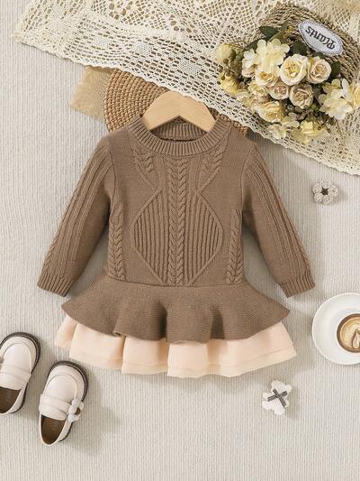 Baby Girl Two Tone Ruffle Hem Sweater Dress-60%