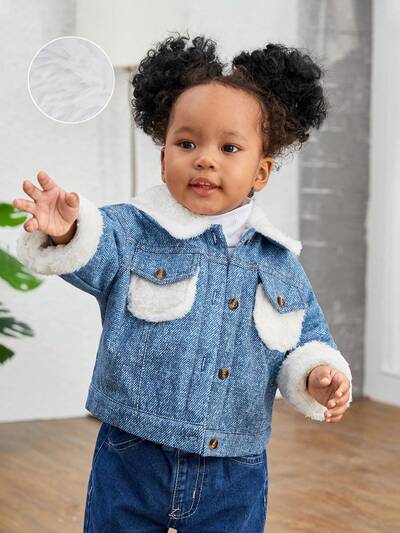 Baby Girl Flap Pocket Borg Collar Teddy Lined Jacket-65%