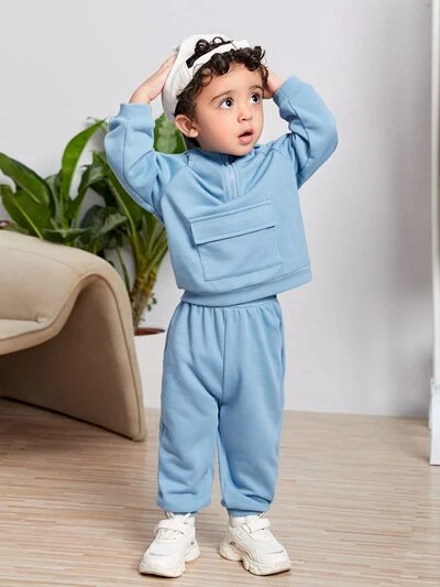 Baby Zip Half Placket Flap Pocket Hoodie & Sweatpants-65%