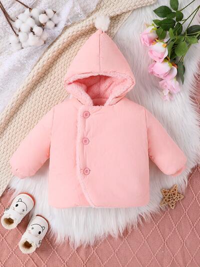 Baby Girl SOLID BUTTON FRONT HOODED Padded Coat-60%