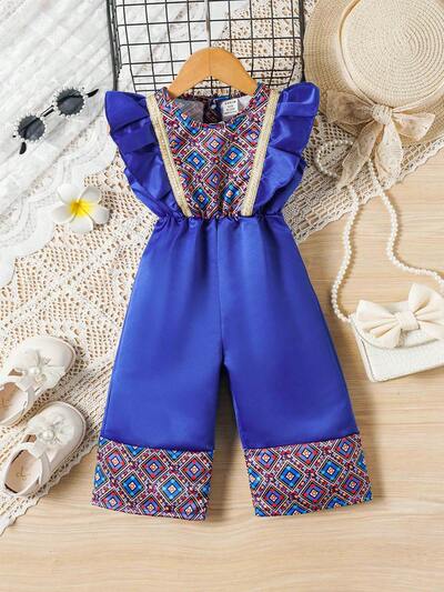 Baby Girl Spring/Summer Classic Printed Cap Sleeve Festival Jumpsuits In Elegant, Gorgeous, Cute And Casual Styles, In Blue-50%