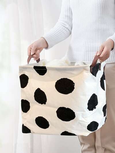 1pc Dot Pattern Storage Basket, Fabric Waterproof Collapsible Storage Cube For Home