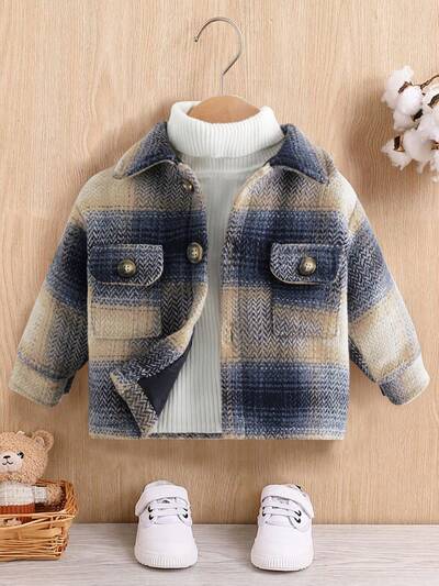 Baby Girls' Plaid Flap Pocket Woolen Coat-65%