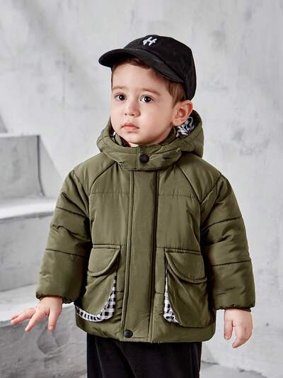 Baby Boy Unisex Baby Casual Hooded Padded Coat In Green-60%