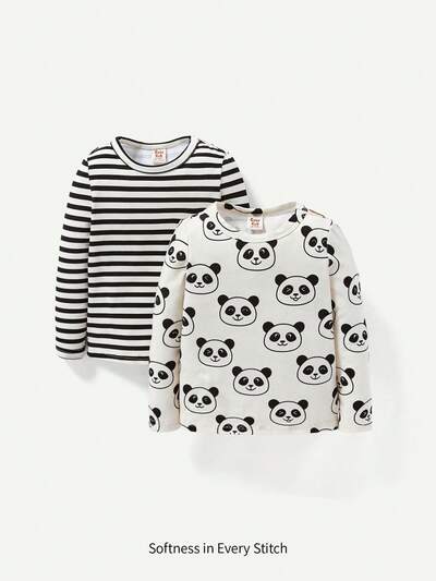 Baby Girl 2pcs Striped & Panda Print Tee-60%