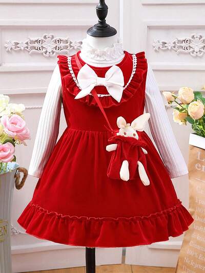 Baby Girl Ruffle Trim Bow Front Dress & Tee & Bag-38%
