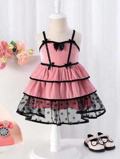 Baby Girl Mesh Contrast Layered Spaghetti Strap Dress-44%