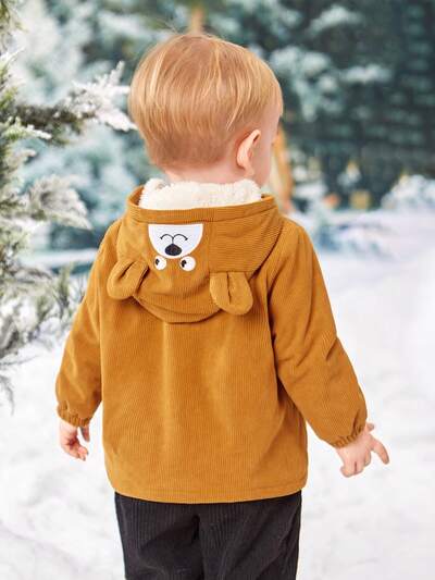 Baby Boy 3D Ear Design Cartoon Graphic Hooded Thermal Lined Coat-50%